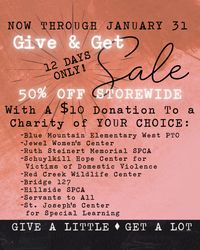 GOING ON NOW: Our Semi-Annual Charity Sale